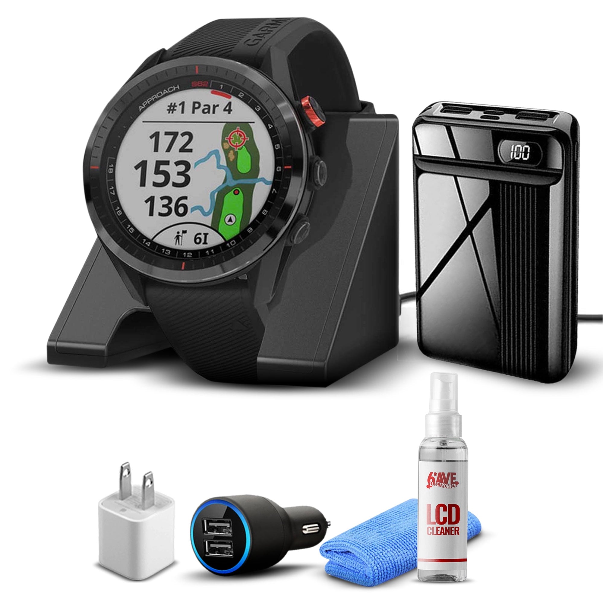 Garmin Approach S62 GPS Golf Watch (Black Bezel/Black Band) + Accessory Kit